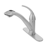 The Vella Kitchen faucet’s sleek design is the perfect fit for virtually any kitchen setting or décor. The single-handle operation and touch-control spray head lets you easily transition from spray to stream with the press of a button.
