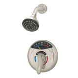 Visu-Temp® Clear-Vue™ shower valves are the perfect choice for specialized care applications. The easy-to-read display and built-in thermometer clearly displays the output water temperature for safety and convenience. With a streamlined single-handle control and durable finish on the outside, the Visu-Temp relies on the Safetymix® pressure-balancing valve behind the wall, which shuts down water flow in the event of failure in hot or cold water supply.