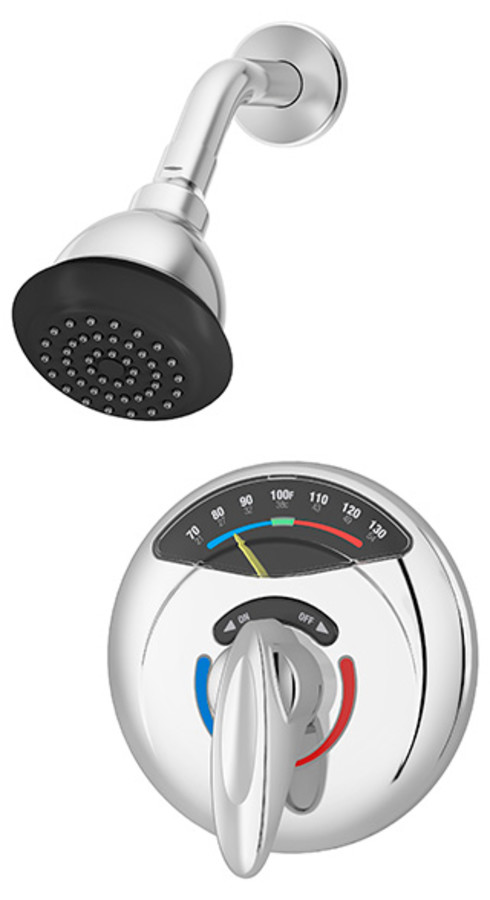 Visu-Temp® Clear-Vue™ shower valves are the perfect choice for specialized care applications. The easy-to-read display and built-in thermometer clearly displays the output water temperature for safety and convenience. With a streamlined single-handle control and durable finish on the outside, the Visu-Temp relies on the Safetymix® pressure-balancing valve behind the wall, which shuts down water flow in the event of failure in hot or cold water supply.
