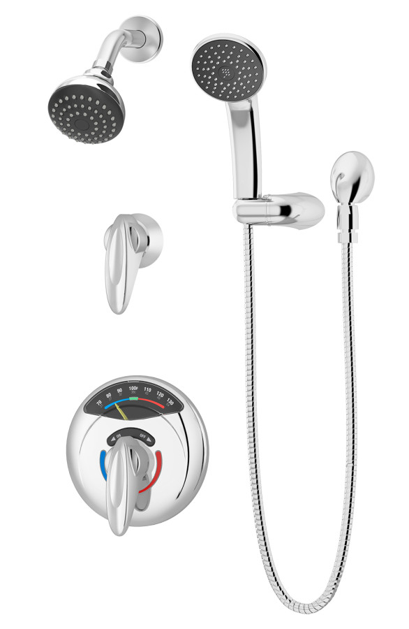 Visu-Temp® Clear-Vue™ shower valves are the perfect choice for specialized care applications. The easy-to-read display and built-in thermometer clearly displays the output water temperature for safety and convenience. With a streamlined single-handle control and durable finish on the outside, the Visu-Temp relies on the Safetymix® pressure-balancing valve behind the wall, which shuts down water flow in the event of failure in hot or cold water supply.