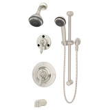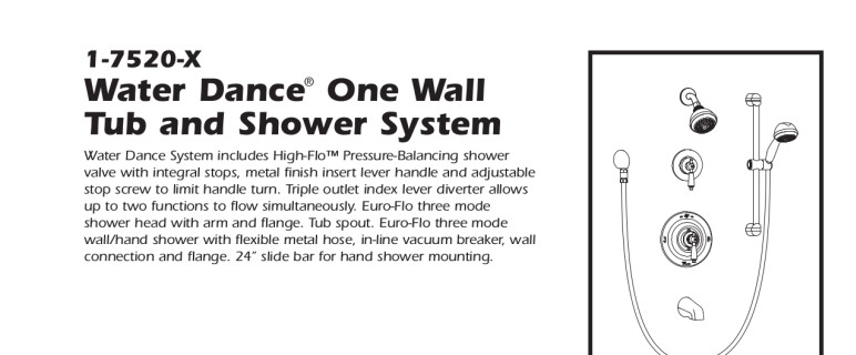 • Water Dance shower system with integral check stops, hand shower, & lever handle